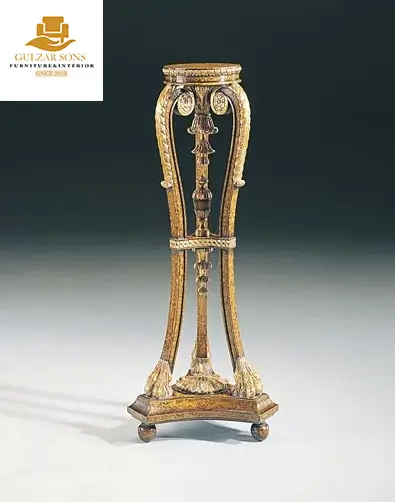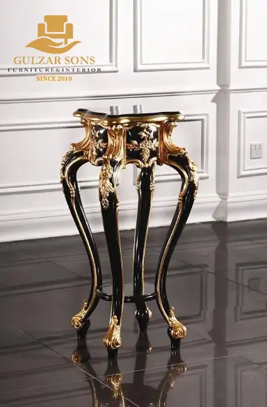 Infuse your luxury lounge with dramatic elegance through a signature entry from the New Latest Furniture Designs 2026. This Antique Style Plant Stand is a monumental display of High Quality Chinioti Furniture 2026, featuring a premium marble surface and high-contrast gold leaf accents. As a Top Quality Furniture Brand in Chiniot 2026, Gulzar Sons has combined bold black lacquer with intricate carvings to create the ultimate "Stately Pedestal".