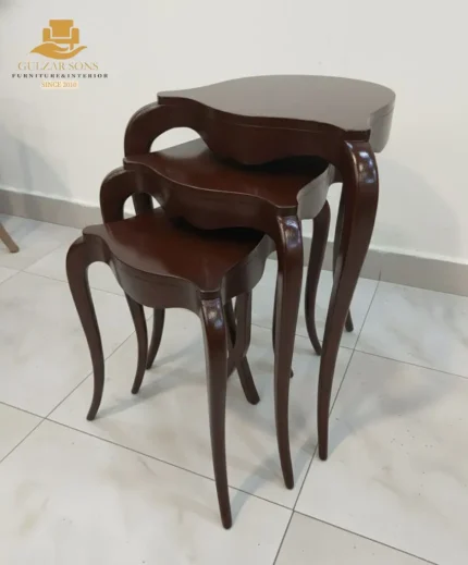 Enhance your home’s functionality without compromising on style with this essential entry from the New Latest Furniture Designs 2026. This set of three Round Nesting Tables (Code: N00057) is a refined example of High Quality Chinioti Furniture 2026, featuring a clever space-saving design that nests perfectly when not in use. As a Top Quality Furniture Brand in Chiniot 2026, Gulzar Sons has crafted these tables to serve as the ultimate flexible surface solution for high-end lounges and guest rooms.