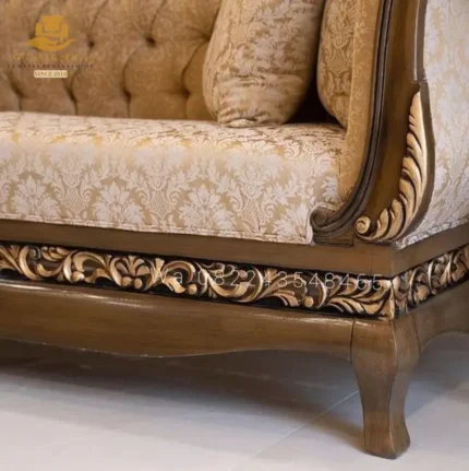 Elevate your drawing room into a private gallery with the New Latest Furniture Designs 2026. This Rococo Giltwood Panel-Back Sofa is a breathtaking display of High Quality Chinioti Furniture 2026, featuring a rare hand-painted scenic medallion backrest framed by exuberant giltwood carvings. As a Top Quality Furniture Brand in Chiniot 2026, Gulzar Sons has masterfully blended the romance of 18th-century French artistry with the world-renowned carving skills of Chiniot.