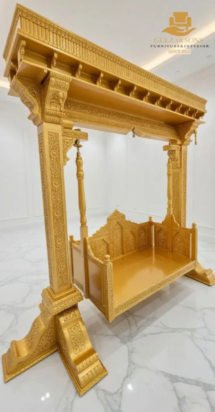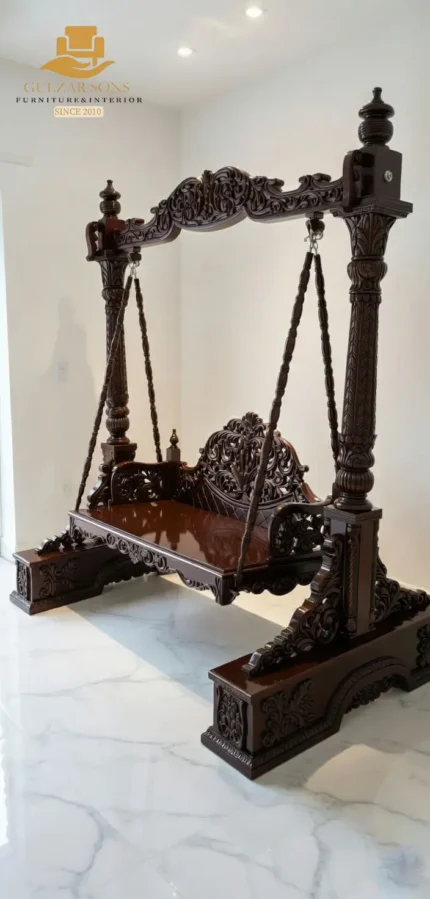 Elevate your home with the timeless grace of the Best Royal Furniture in Chiniot 2026. This masterfully crafted wooden swing (Jhoola) is a hallmark of luxury, designed for those who seek the Best Carving Furniture in Chiniot 2026. Hand-chiseled by expert artisans, it serves as a stunning centerpiece that blends Chinioti heritage with modern-day elegance.As a premier luxury brand 2026, Gulzar Sons Furniture ensures that every piece meets the highest standards of Export Quality Chinioti Furniture 2026. This swing is constructed from the Best Solid Shesham wood Furniture in chiniot 2026, seasoned to perfection in our own factories to guarantee a lifetime of durability and comfort. With three grand showrooms to serve you, we provide the assurance of quality that only a Top Quality Furniture Brand in chiniot 2026 can offer.Transform your living space or patio with a piece that defines high-quality Chinioti furniture. Visit our showrooms today or order online for safe nationwide delivery.