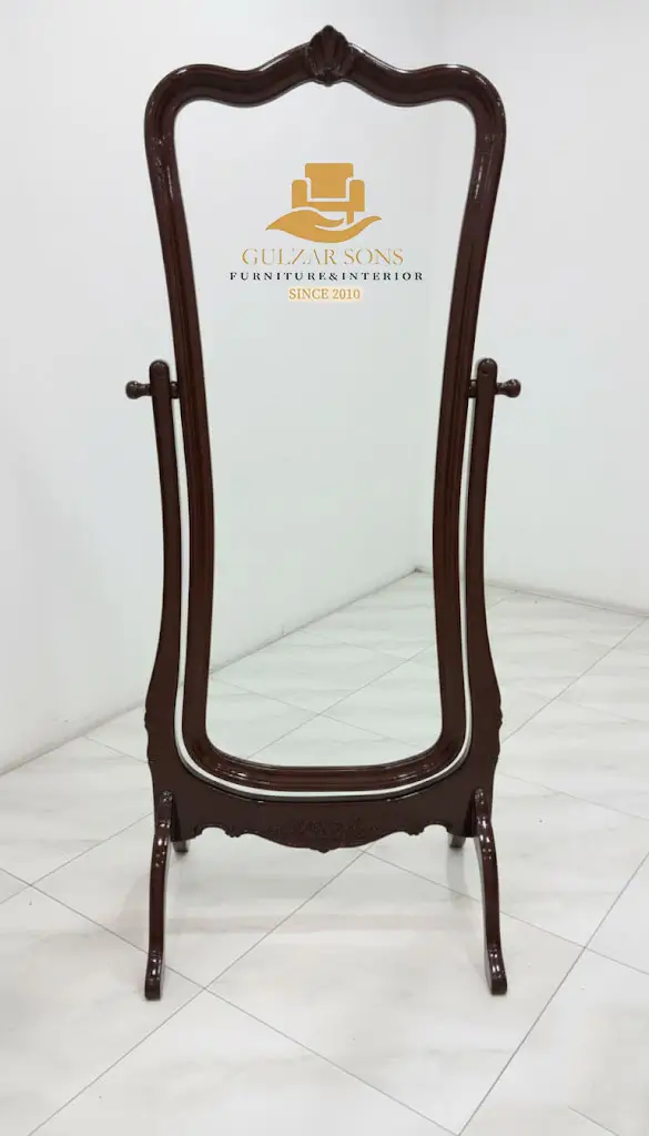Building on the prestigious reputation of Gulzar Sons Furniture & Interior, this Imperial Heritage Ornate Cheval Mirror (Code: N00089) is a masterclass in High Quality Chinioti Furniture 2026. Designed to bring a touch of timeless grace and structural perfection to your luxury dressing room or bridal suite, it represents the absolute Best Quality furniture in Chiniot 2026.