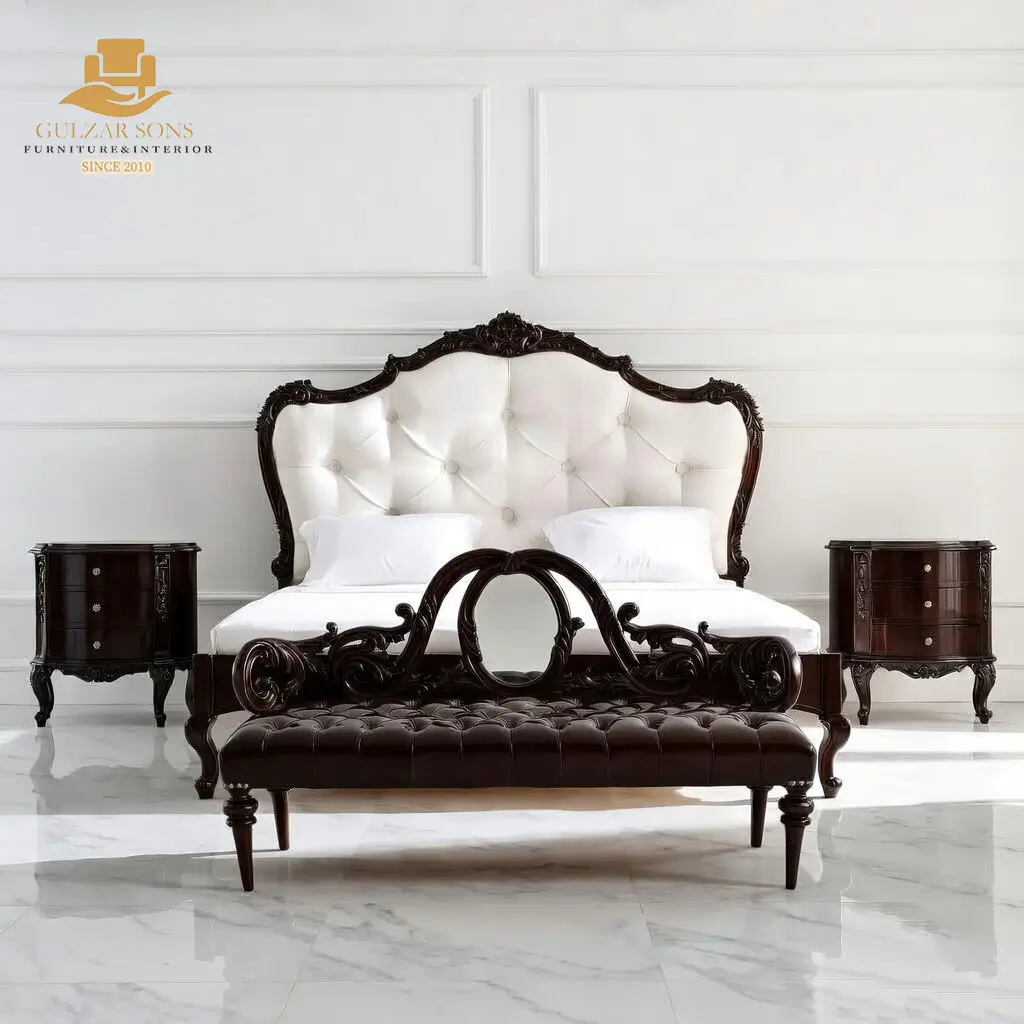 Bring the timeless elegance of a palace to your home with the New Latest Furniture Designs 2026. This Heritage Royal Victorian Carved Red Velvet Bed Set is an extraordinary example of High Quality Chinioti Furniture 2026, meticulously handcrafted for elite clients seeking the Best Royal Furniture in Chiniot 2026. Featuring a high-profile “Crown” headboard with deep-relief Victorian scrollwork and premium ruby-red tufted velvet, this set establishes Gulzar Sons as a premier luxury brand 2026.