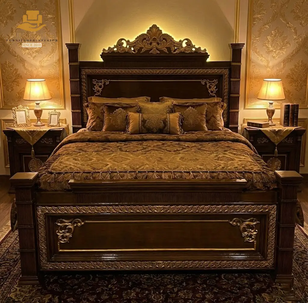Masterfully hand-constructed from the Best Solid Shesham wood Furniture in chiniot 2026, every inch of the frame is seasoned in our private factories to guarantee Export Quality Chinioti Furniture 2026 standards. As a Top Quality Furniture Brand in chiniot 2026, we have utilized a multi-layered gold-leaf finish with deep mahogany-stained accents to highlight the intricate floral carvings. Whether as the ultimate Best Jahaiz Package Furniture in Chiniot 2026 or a signature piece for a heritage villa, this bed represents the Best Quality furniture in chiniot 2026. Visit our 3 grand showrooms to witness the Victorian majesty of original Gulzar Sons.