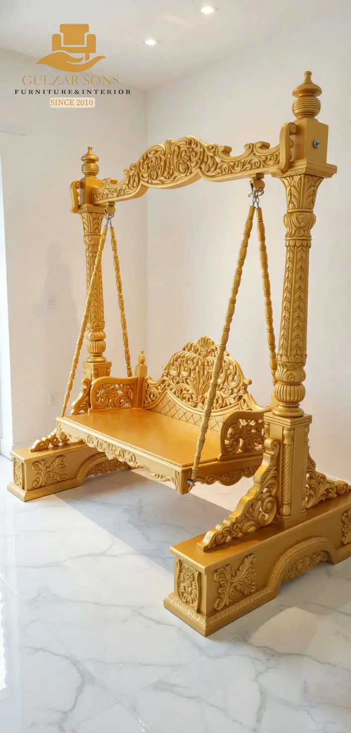 As a Top Quality Furniture Brand in chiniot 2026, Gulzar Sons utilizes only the Best Solid Shesham wood Furniture in chiniot 2026, ensuring that this cradle is not just beautiful, but built with a foundation of safety and strength. Every detail, from the hand-applied gold leafing to the premium tufted velvet interior, reflects our status as a premier luxury brand 2026. Manufactured in our own factories and displayed in our 3 grand showrooms, we offer Export Quality Chinioti Furniture 2026 that becomes a cherished family heirloom.