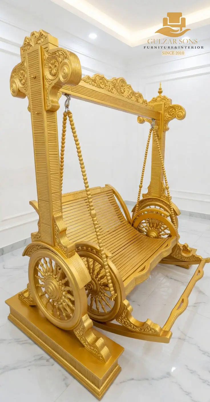As a premier luxury brand 2026, Gulzar Sons Furniture ensures that every piece meets the highest standards of Export Quality Chinioti Furniture 2026. This swing is constructed from the Best Solid Shesham wood Furniture in chiniot 2026, seasoned to perfection in our own factories to guarantee a lifetime of durability and comfort. With three grand showrooms to serve you, we provide the assurance of quality that only a Top Quality Furniture Brand in chiniot 2026 can offer.