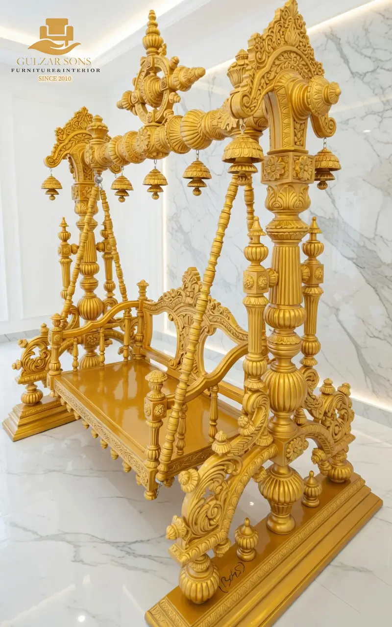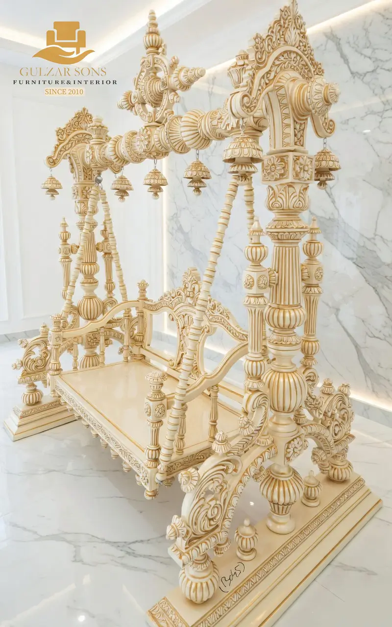 Experience the pinnacle of craftsmanship with our New Latest Furniture Designs 2026. This exquisite indoor swing is a masterpiece of High Quality Chinioti Furniture, featuring deep, intricate hand-carvings that represent the soul of Chiniot’s woodworking heritage. Designed as a statement piece for royal homes, it combines traditional aesthetic with the durability of the Best Solid Shesham wood Furniture in chiniot 2026.