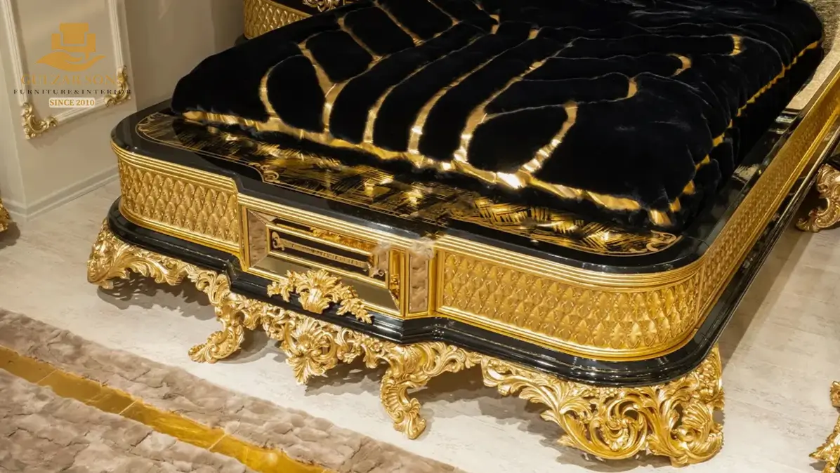 Command the ultimate in luxury living with the New Latest Furniture Designs 2026. This Premium Black & Gold Royal Classic Bedroom Set is the crown jewel of High Quality Chinioti Furniture 2026, meticulously engineered for elite clients who demand the Best Royal Furniture in Chiniot 2026. Featuring a monumental high-back headboard this set establishes Gulzar Sons as a premier luxury brand 2026.
