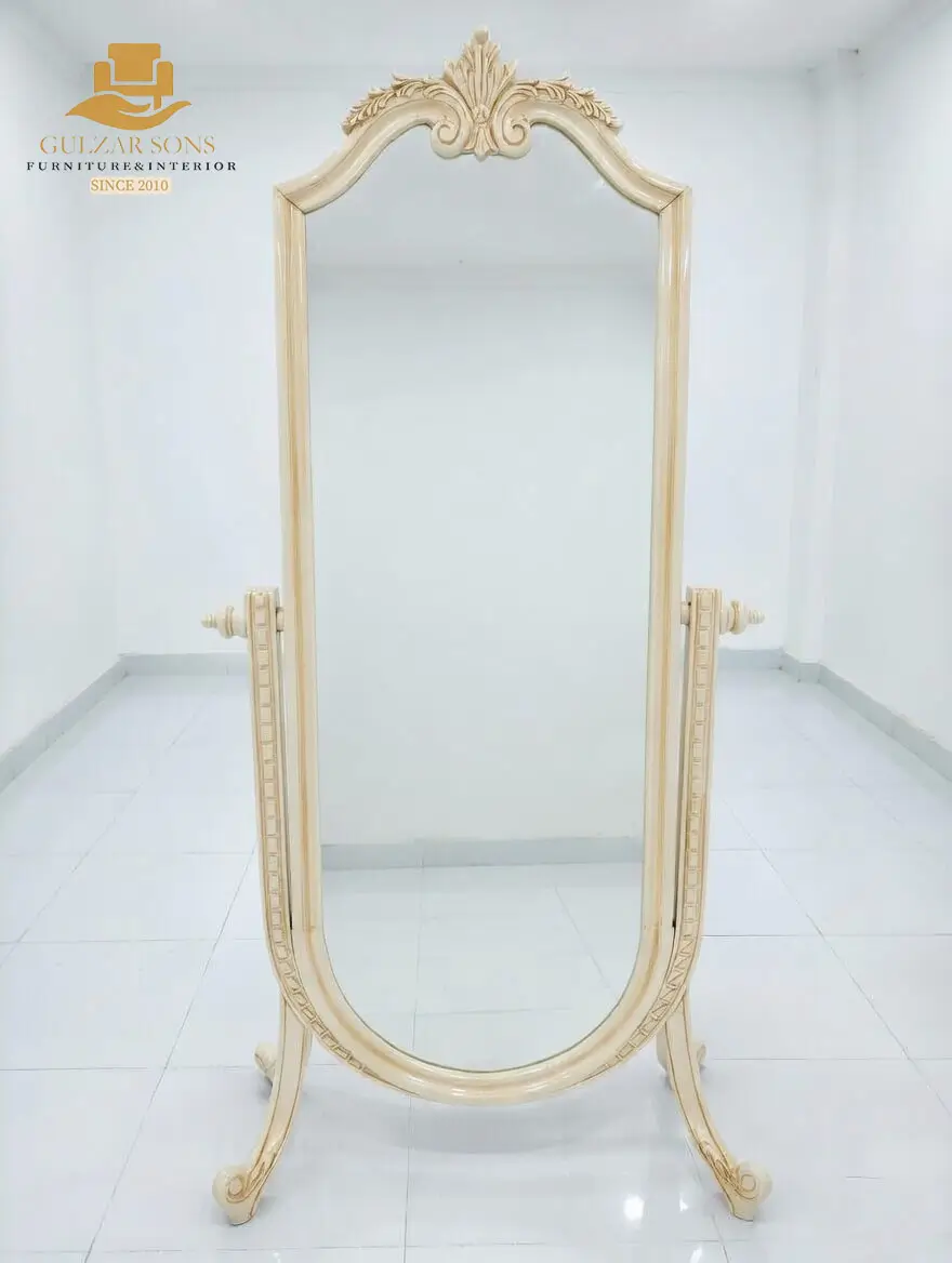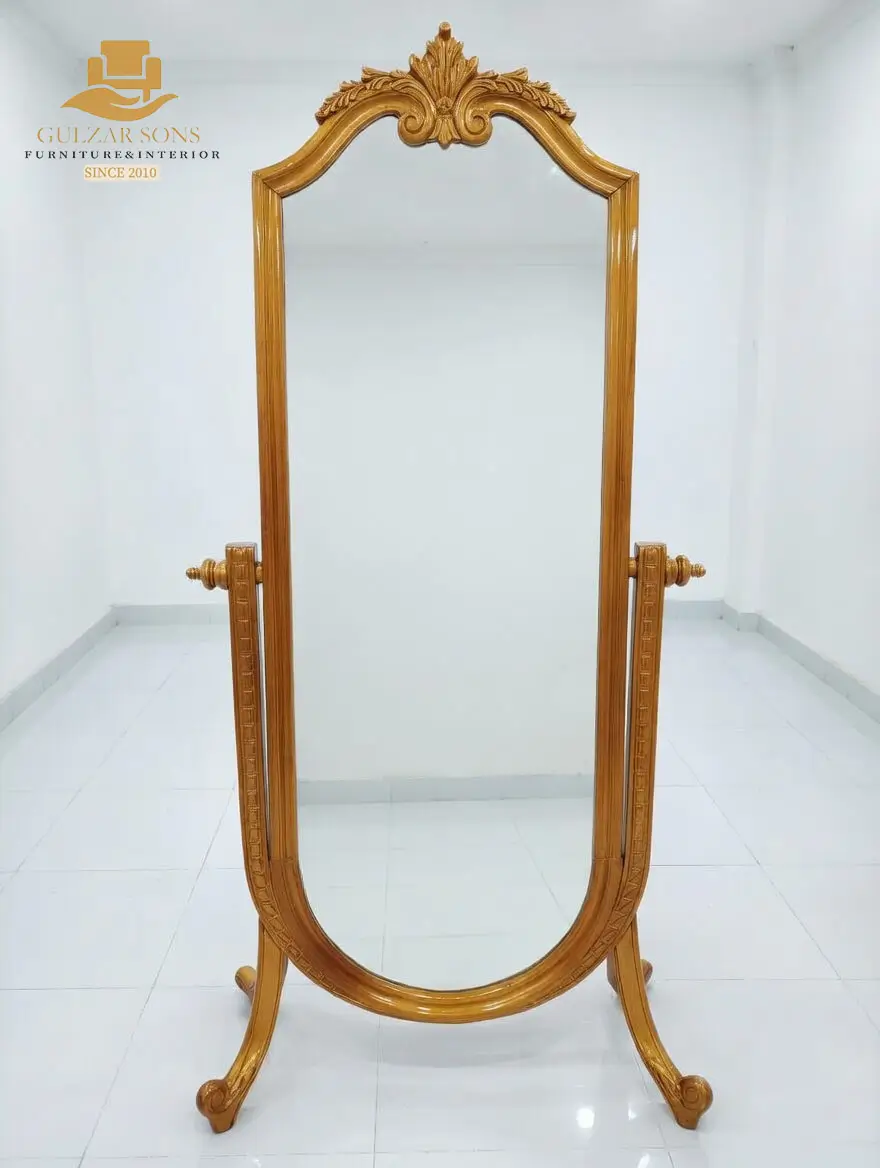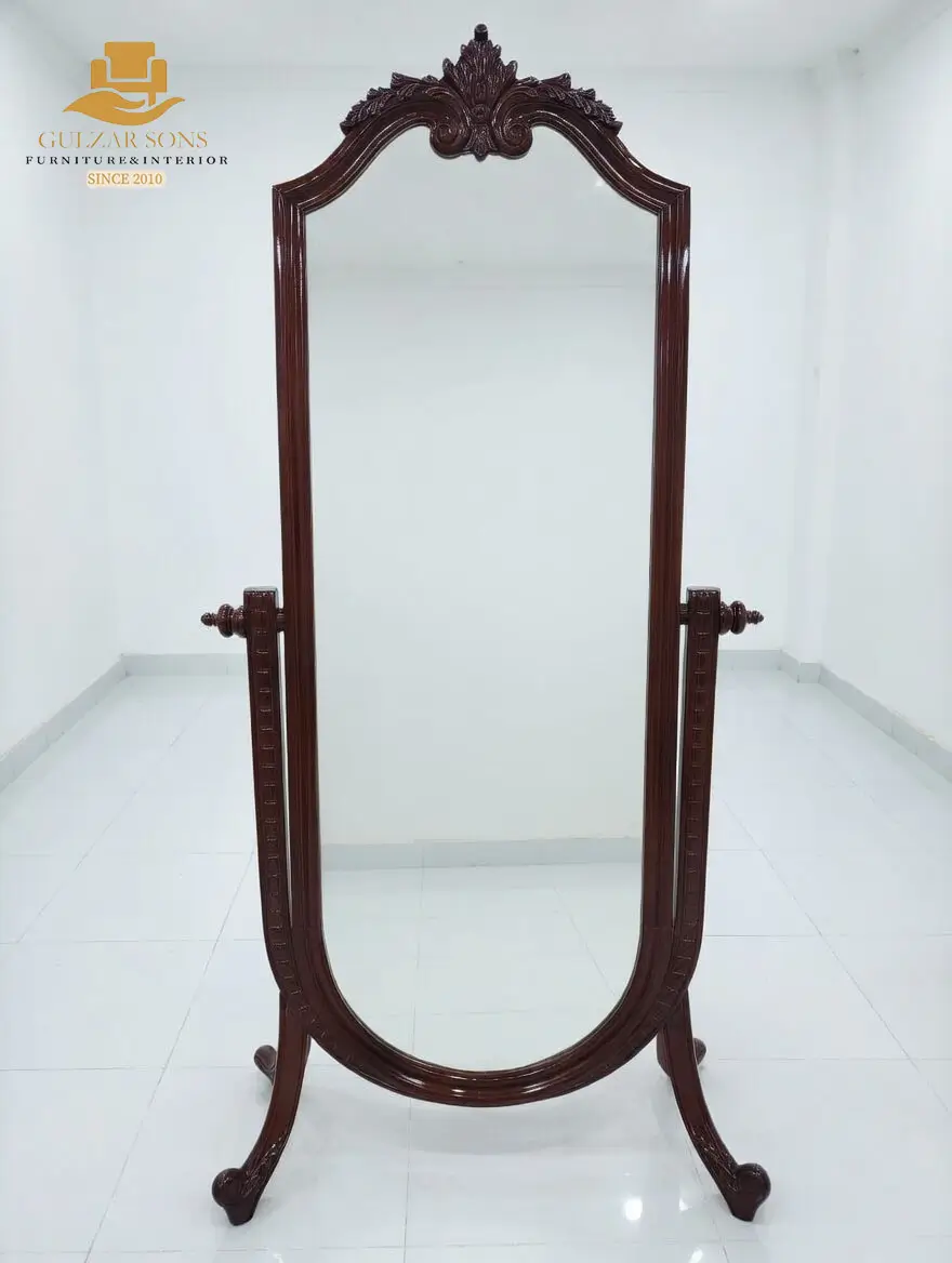 Masterfully hand-constructed from the Best Solid Shesham wood Furniture in Chiniot 2026, the frame is seasoned to meet Export Quality Chinioti Furniture 2026 standards, ensuring permanent structural integrity for heavy, high-clarity glass. The design showcases the most intricate Best Carving Furniture in Chiniot 2026, with every leaf and curve hand-sculpted by hereditary masters. Whether serving as a stately welcome in your entryway or as a luxury highlight in a Best Jahaiz Package Furniture in Chiniot 2026, this mirror stands as the definitive Premium Quality Furniture in Chiniot 2026.