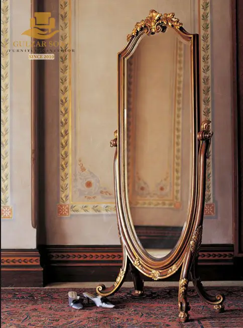 Design: Grand European Baroque aesthetic with a classic oval aperture and deep-relief ornate carvings.