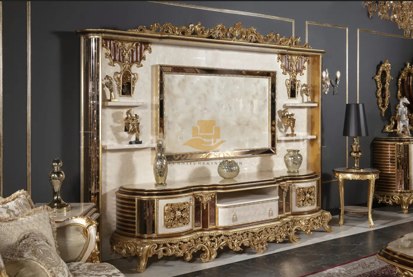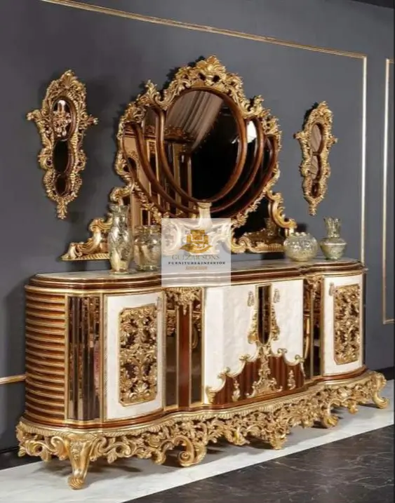 Command every corner of your estate with the New Latest Furniture Designs 2026 curated into one seamless luxury experience. This extensive suite is a breathtaking display of High Quality Chinioti Furniture 2026, bridging the gap between functional household utility and the absolute Best Royal Furniture in Chiniot 2026. As the Top Quality Furniture Brand in Chiniot 2026, Gulzar Sons has paired artisan-crafted service trolleys with majestic standing mirrors and marble-topped pedestals to define the premier luxury brand 2026.