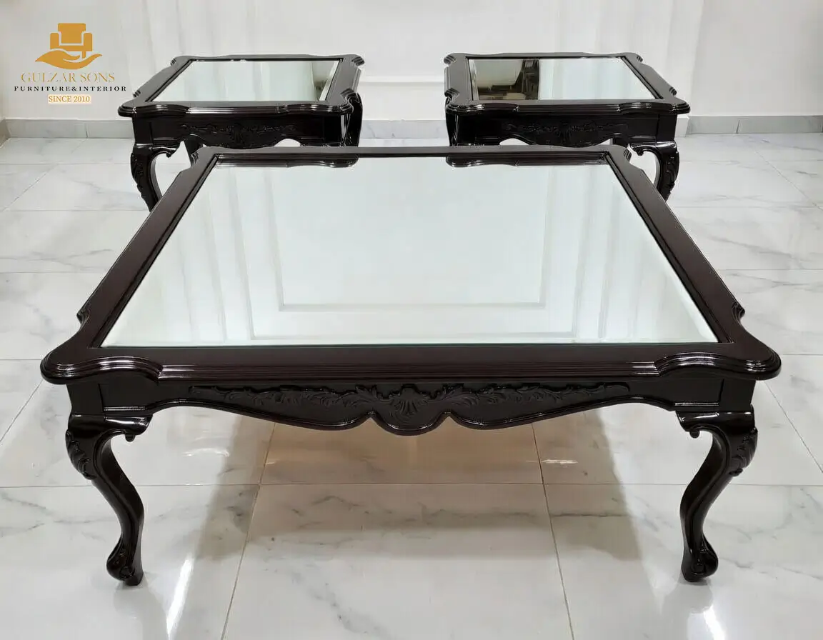 Masterfully hand-constructed from the Best Solid Sheesham wood Furniture in Chiniot 2026, the frames are seasoned to meet Export Quality Chinioti Furniture 2026 standards, ensuring permanent structural integrity for heavy, high-gloss table tops. The design showcases the most intricate Best Carving Furniture in Chiniot 2026, with every leaf and cabriole leg hand-sculpted by hereditary masters. Whether serving as a stately centerpiece in your drawing room or as a luxury highlight in a Best Jahaiz Package Furniture in Chiniot 2026, this set stands as the definitive Premium Quality Furniture in Chiniot 2026.