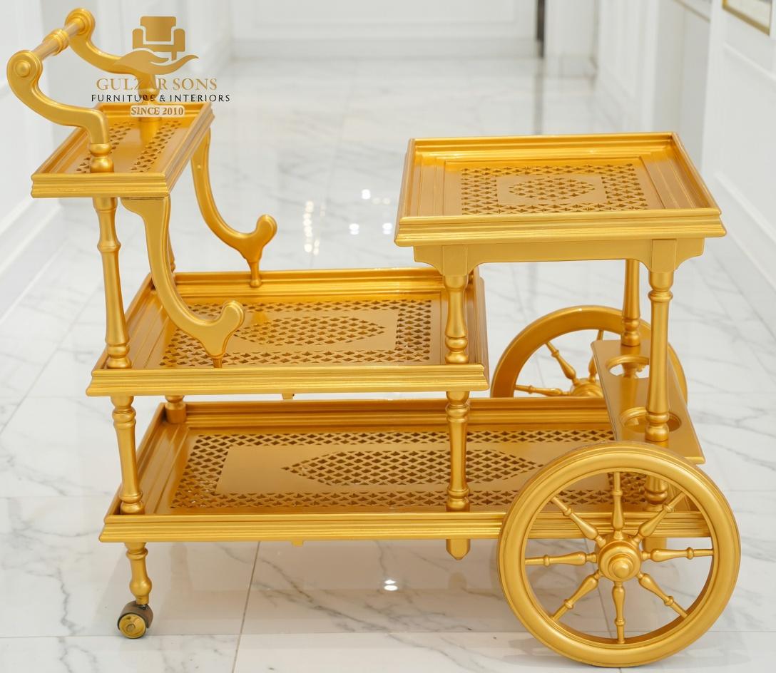 Elevate your hospitality to royal standards with a signature piece from the New Latest Furniture Designs 2026. This unique 3-tier Wood Serving Trolley (Code: 18016) is a sophisticated display of High Quality Chinioti Furniture 2026, featuring an architectural multi-level design with intricate latticework platforms. As a Top Quality Furniture Brand in Chiniot 2026, Gulzar Sons has crafted this trolley to serve as the ultimate “Mobile Feast Station” for the modern luxury home.
